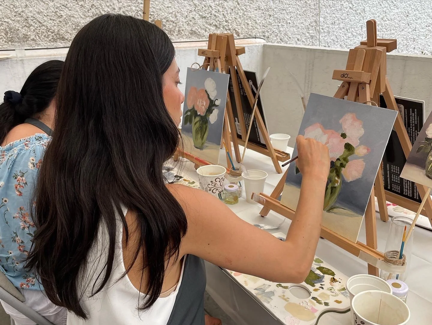 Incluye todo el material: objetos a pintar, pinturas, pinceles, paletas, mandiles y manteles.